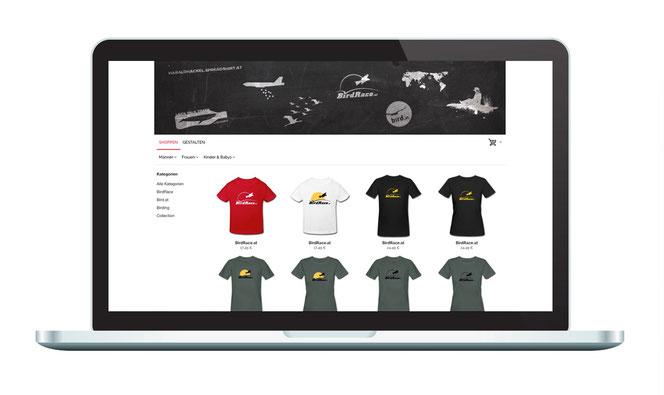 Kein Problem – in unsrem Online-Shop gibt's eine große Auswahl an Shirts in unterschiedlichsten Farben und Größen. Wer will kann sich sogar sein ganz persönliches BirdRace-Shirt gestalten!